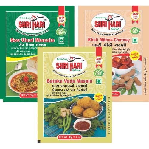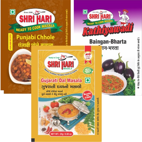 - Saute ginger-chilli paste and tejpan, crushed tomatoes, then add all the “Shri Hari Paneer Kaju Curry Masala” from packet and two big glass water with grated paneer. The tasty gravy is ready.