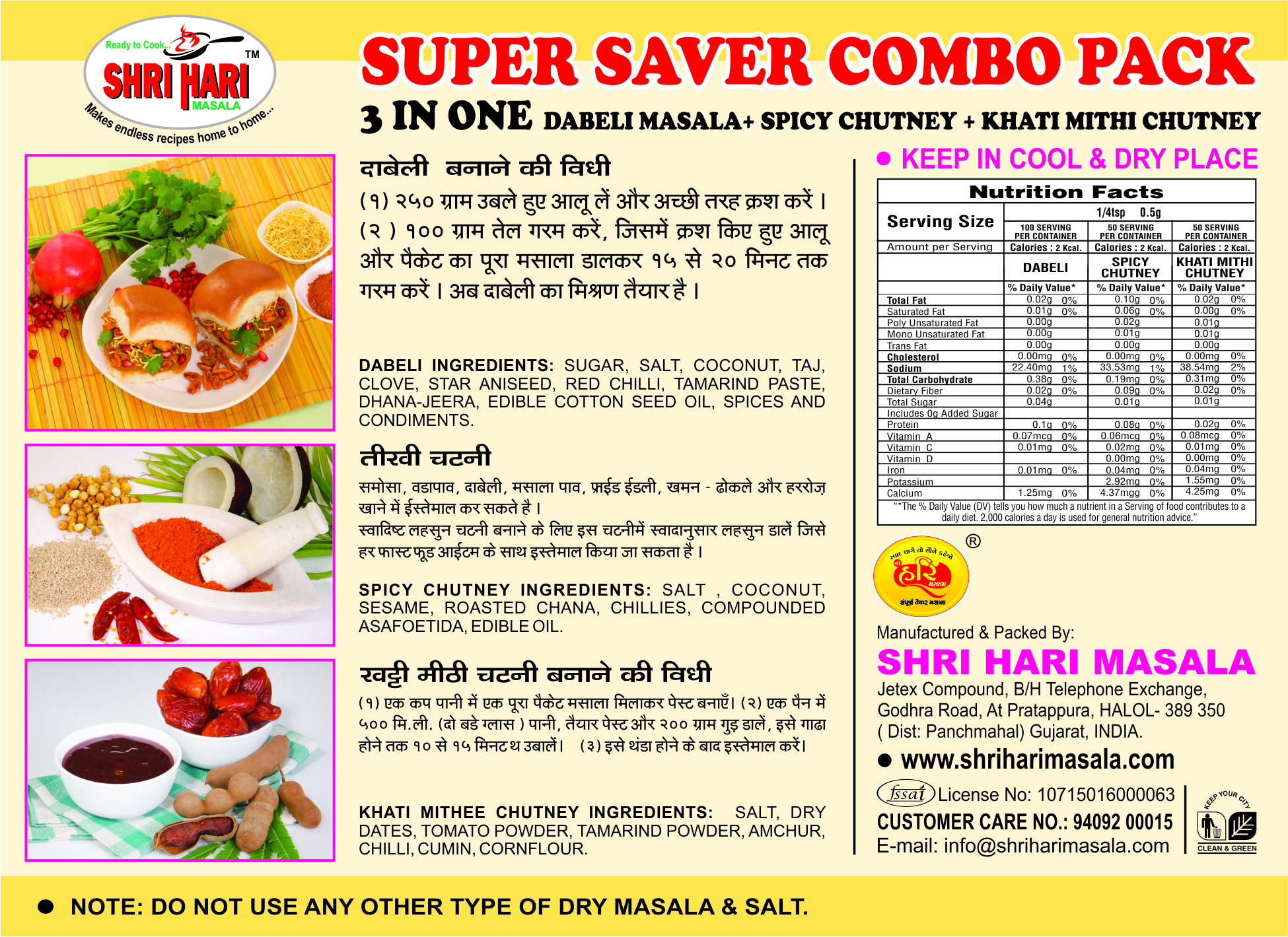 Shri Hari Ready To use Dabeli Masala + Spicy Chutney + Khati Mithi Chutney which includes all spice you do not add any masala in this masala.