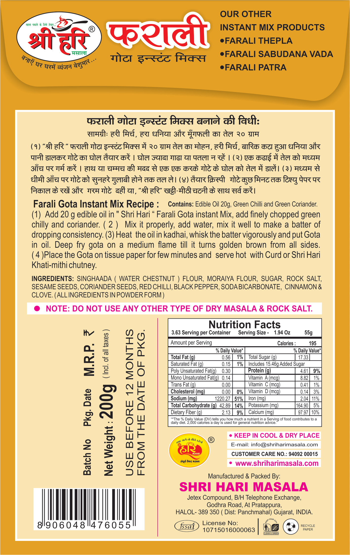 Contents: 200g. Sabudana, 150g. Potato, Capsicum 1 no, 50g Ginger-Green Chillies, 30g Crushed Peanuts, Dry Red Chilli 1 no., Curry Leaves, Coriander, Groundnut Oil or Pure Ghee