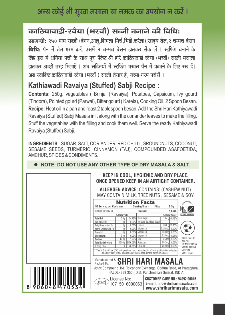 Saute ginger-chilli paste and tejpan, crushed tomatoes, then add all the “Shri Hari Paneer Kaju Curry Masala” from packet and two big glass water with grated paneer. The tasty gravy is ready.