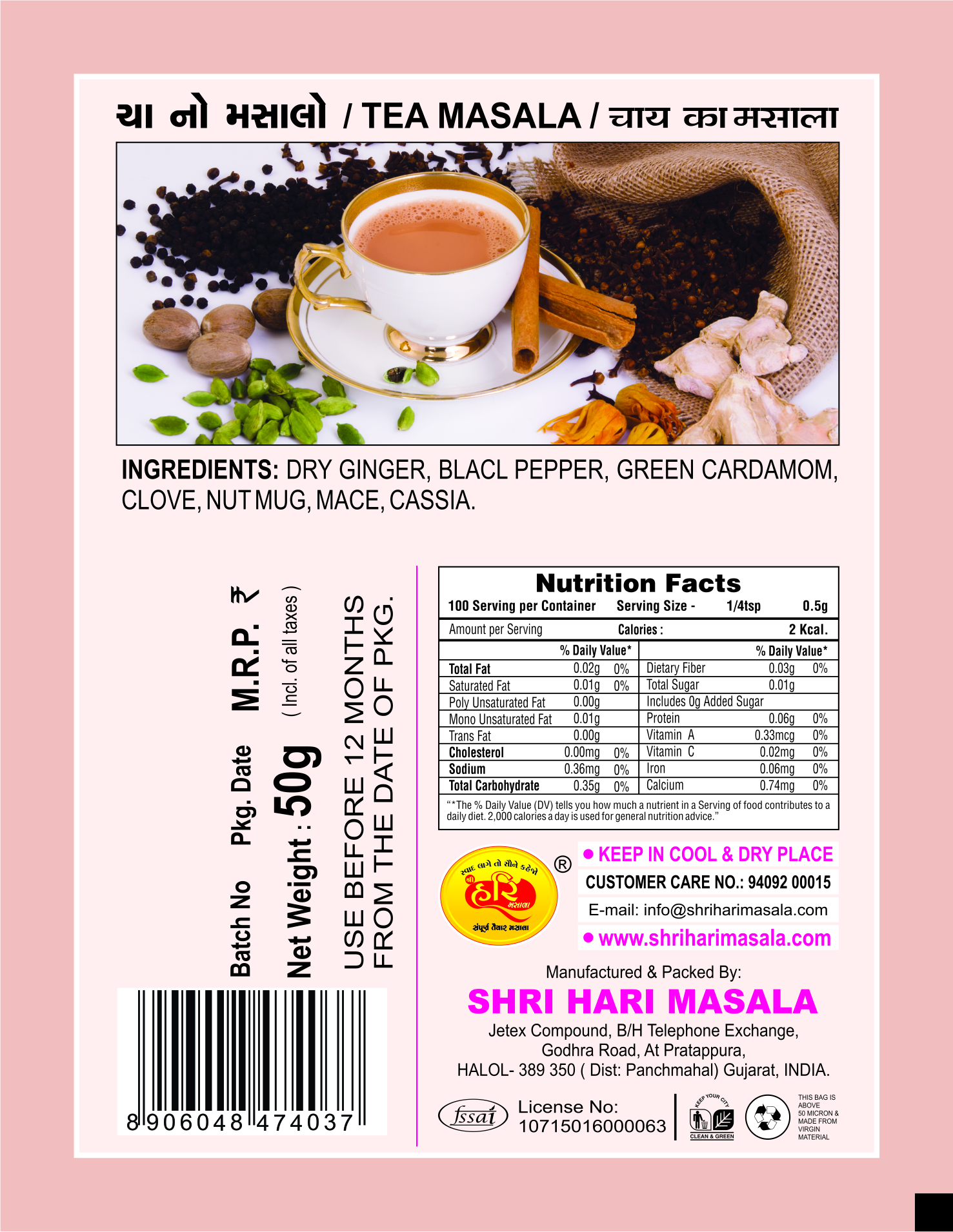 Tea Masala Shri Hari Ready To Use Tea Masala which includes allspice you do not add any masala in this masala.
